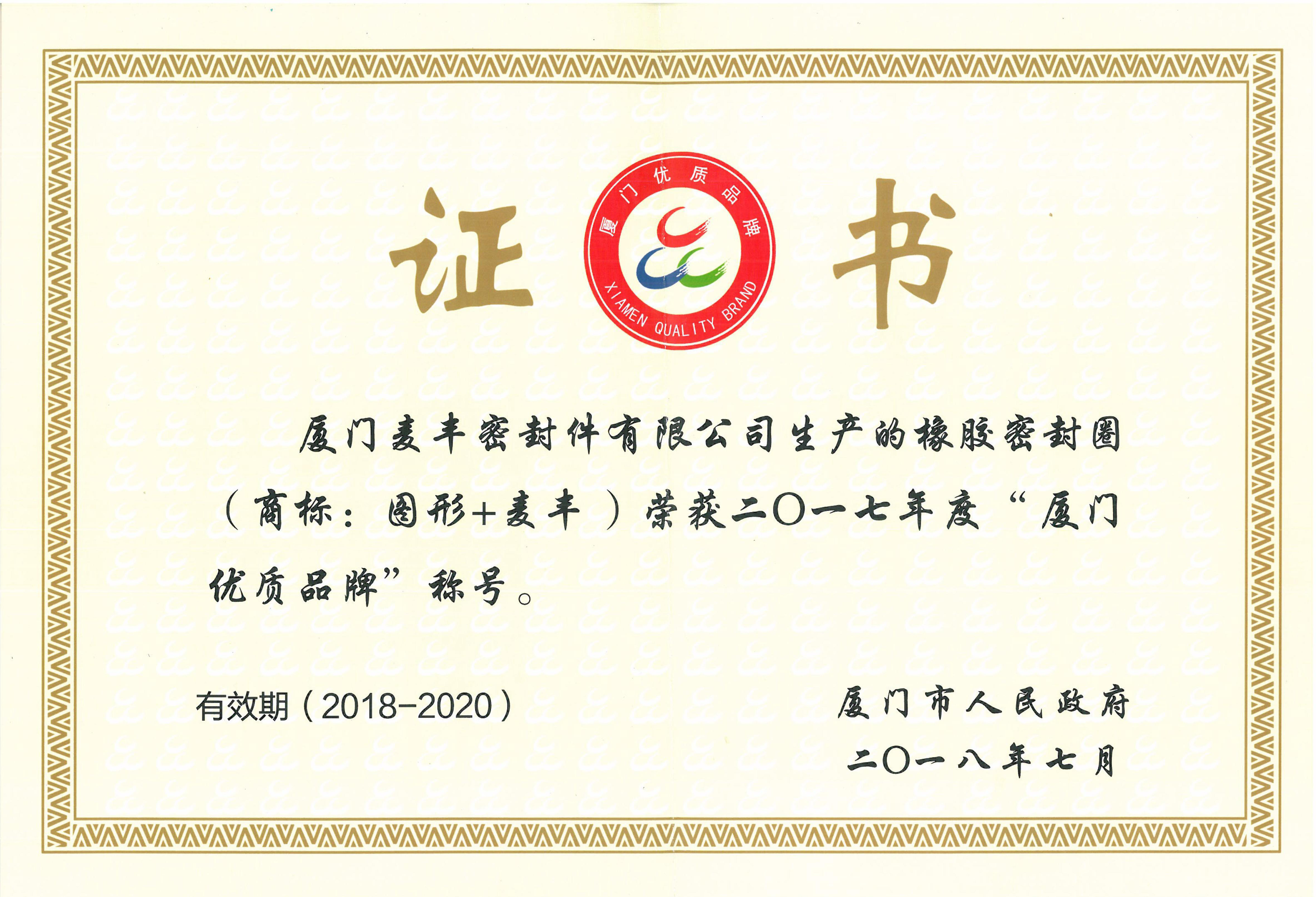 9月3日,市質(zhì)監(jiān)局召開(kāi)2018年質(zhì)量信用建設(shè)推進(jìn)會(huì),為樹(shù)立和宣傳質(zhì)量誠(chéng)信先進(jìn)典型,營(yíng)造“質(zhì)量第一、誠(chéng)信經(jīng)營(yíng)”的良好氛圍,肯定我司在質(zhì)量與誠(chéng)信上的成績(jī),鼓勵(lì)我司為創(chuàng)建廈門(mén)市加快高質(zhì)量發(fā)展培育品牌競(jìng)爭(zhēng)新優(yōu)勢(shì)做出貢獻(xiàn),會(huì)上,廈門(mén)市人民政府授予我司2017年度“廈門(mén)優(yōu)質(zhì)品牌”稱號(hào)。