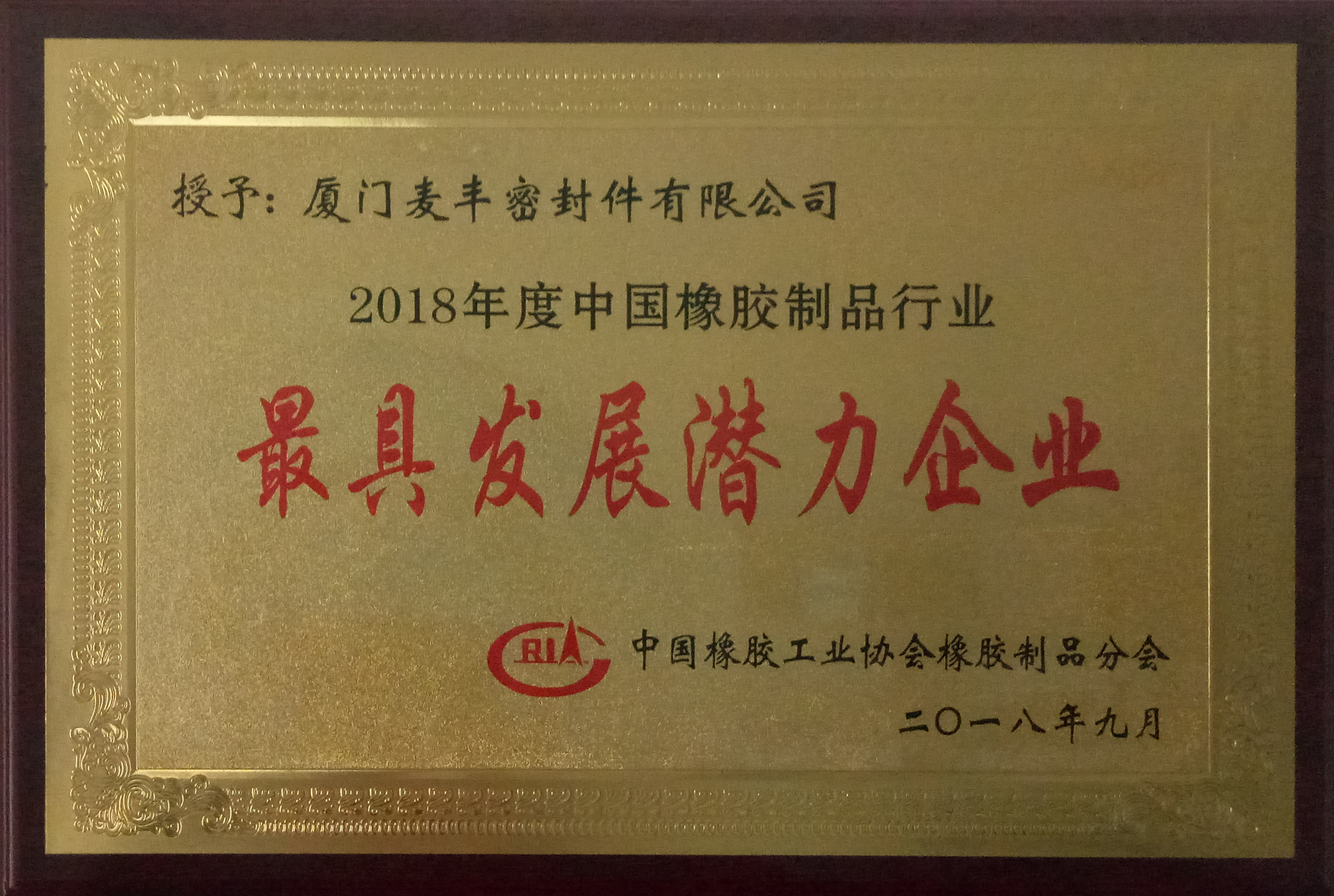 為表彰先進企業(yè),發(fā)揚榜樣力量,經中國橡膠工業(yè)協會橡膠制品分會評審,我司榮獲2018年度中國橡膠制品行業(yè)“最具發(fā)展?jié)摿ζ髽I(yè)”稱號。協會對我司已取得的成果給予了肯定,對我司的發(fā)展目標給出了高度評價,希望我司努力創(chuàng)新,積極奮力進取,在將來取得新佳績,為經濟社會發(fā)展做出新的更大貢獻。